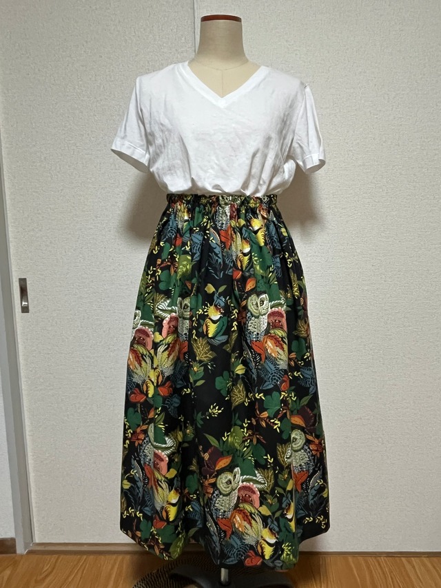 フクロウ柄ギャザースカート