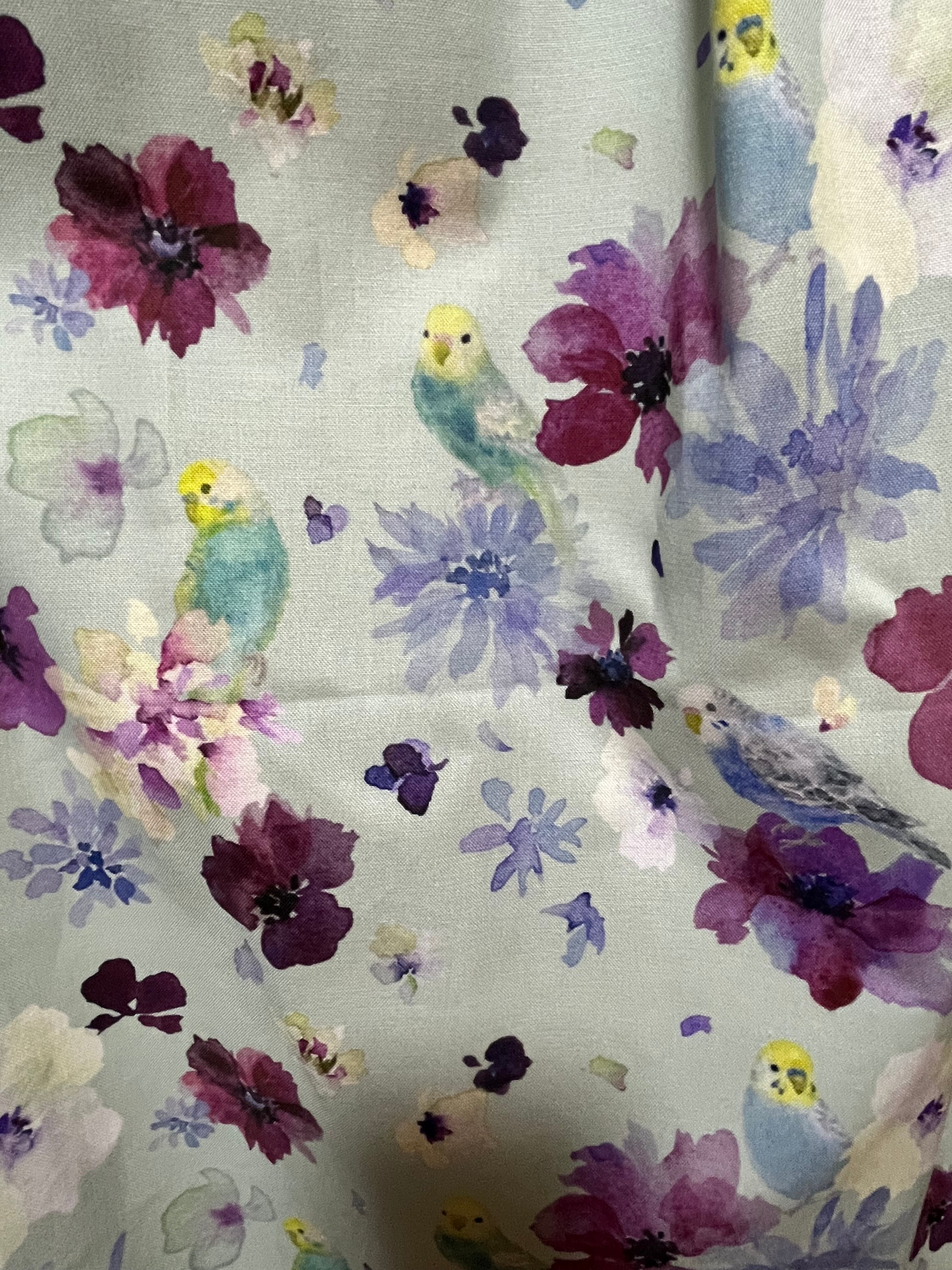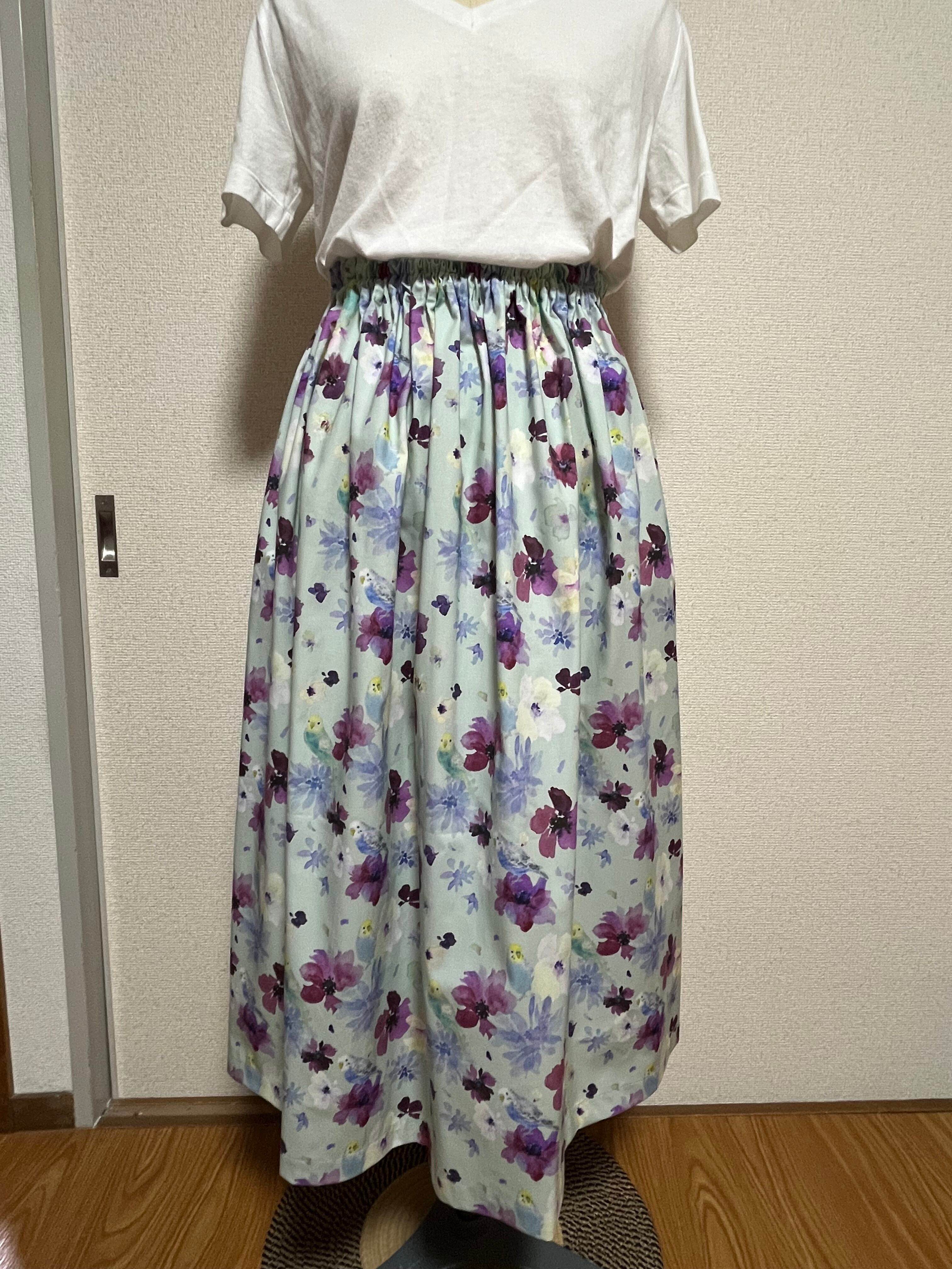 花とセキセイインコ柄ギャザースカート