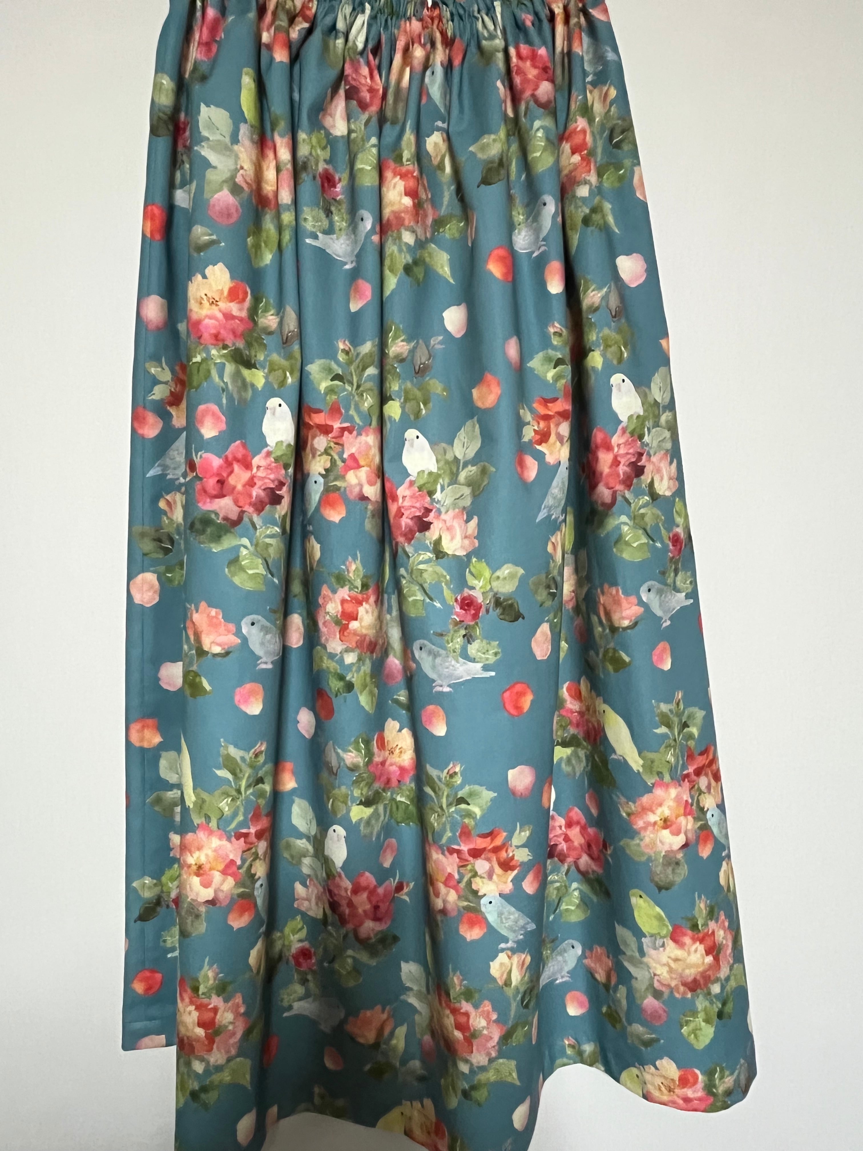 薔薇とサザナミインコ柄ギャザースカート | KAPUSERUplus