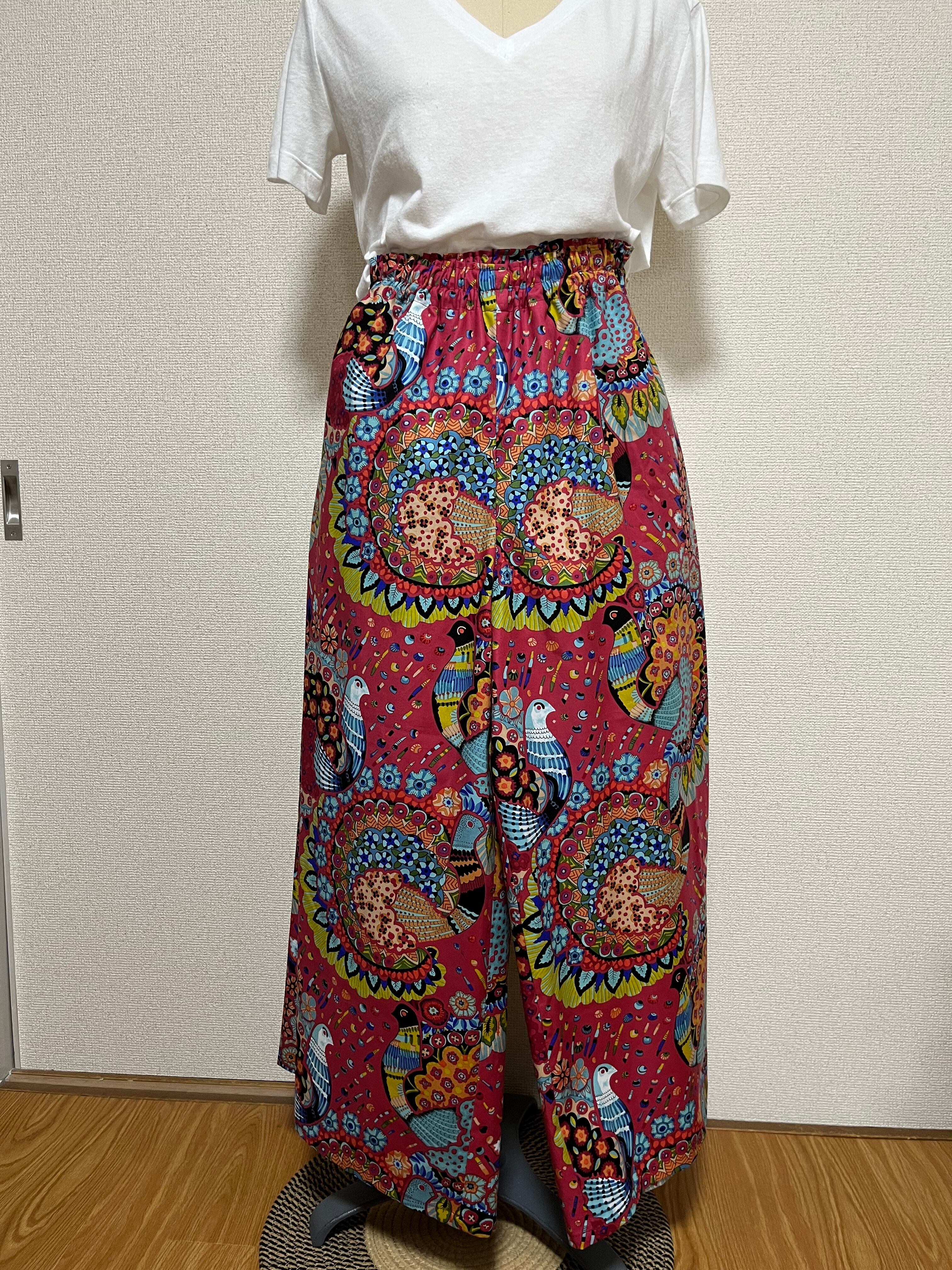 輸入生地を使用して縫製したフリーサイズワイドパンツです。(レディースLサイズくらい) 股下60cm