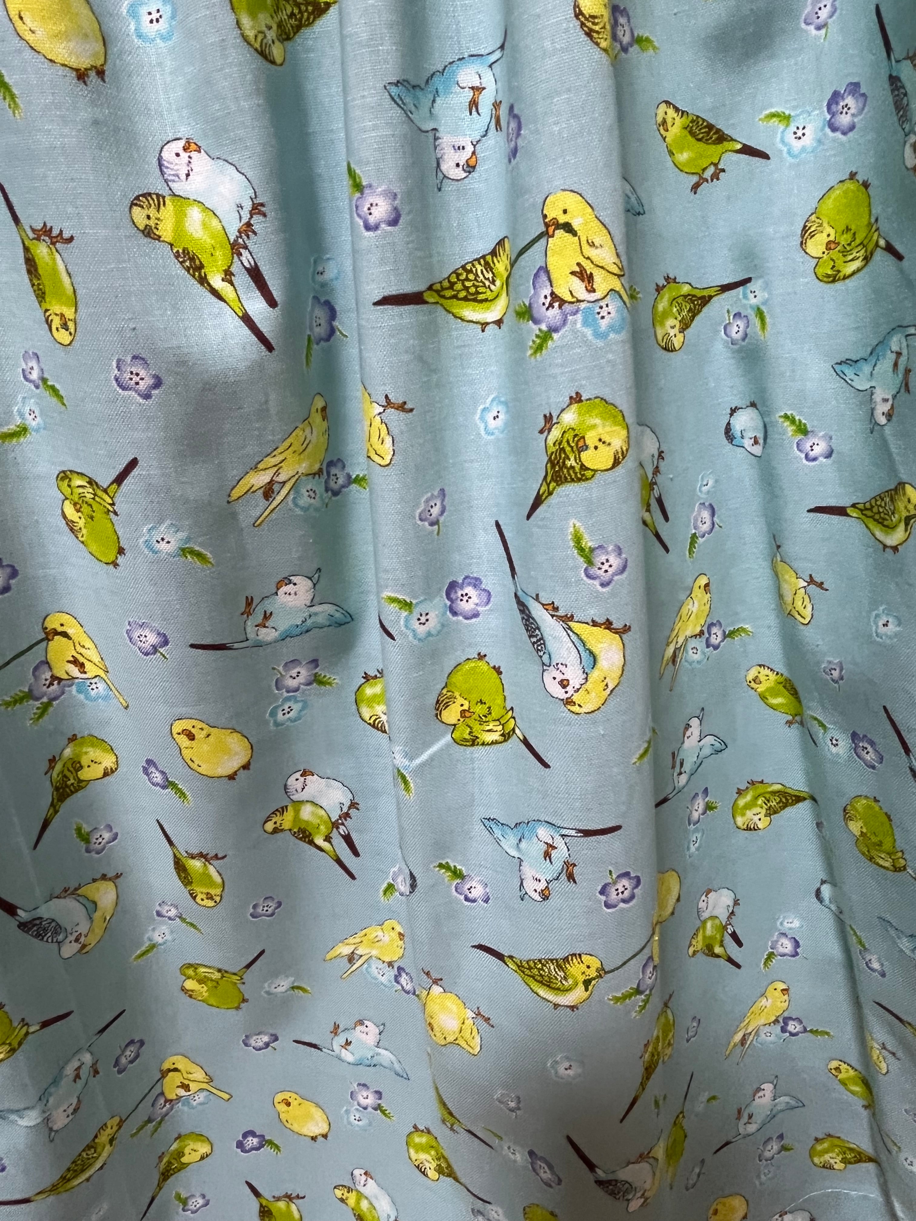 お花とセキセイインコ柄ギャザースカート