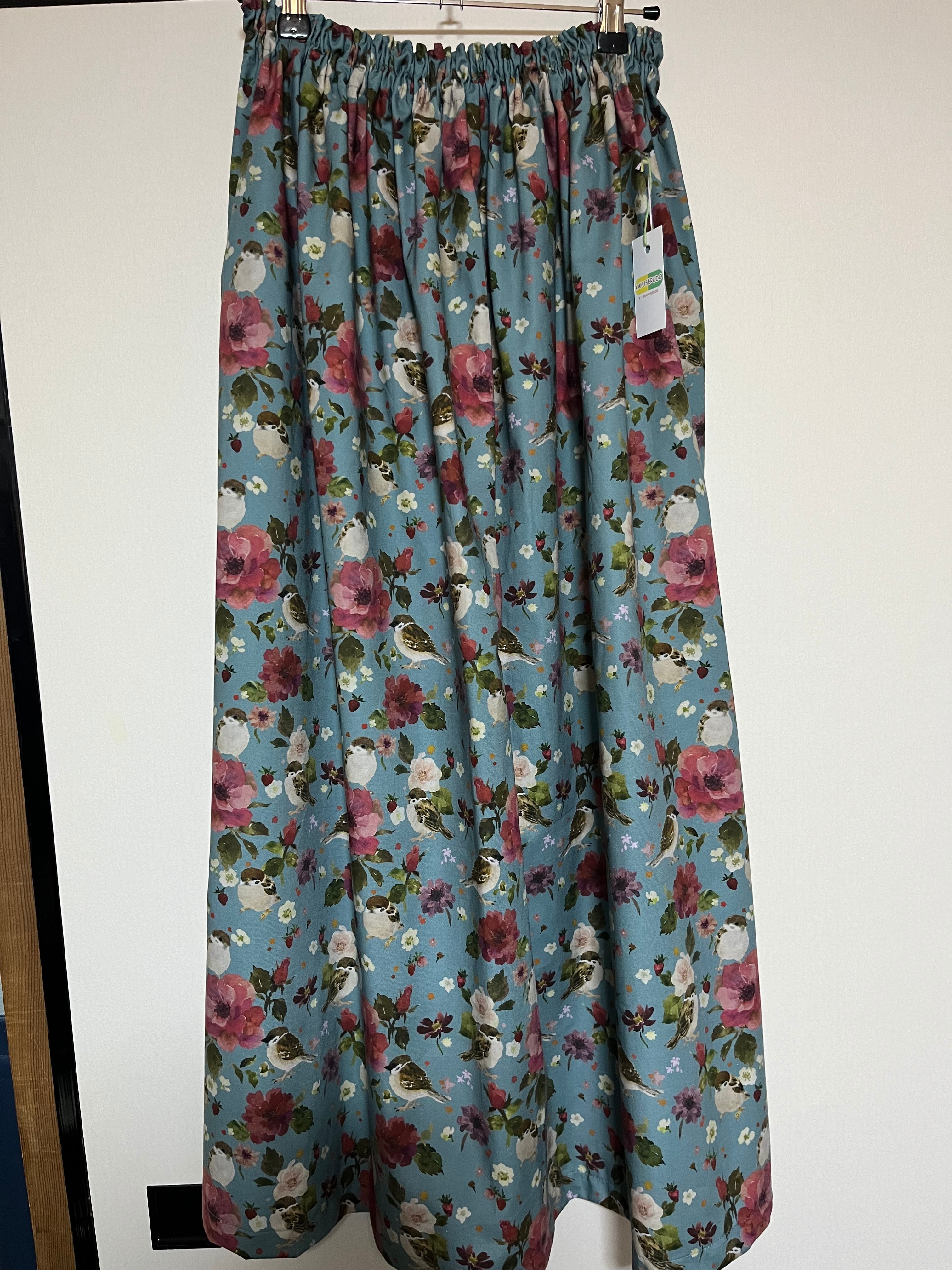 90cm丈薔薇と雀柄ギャザースカート | KAPUSERUplus