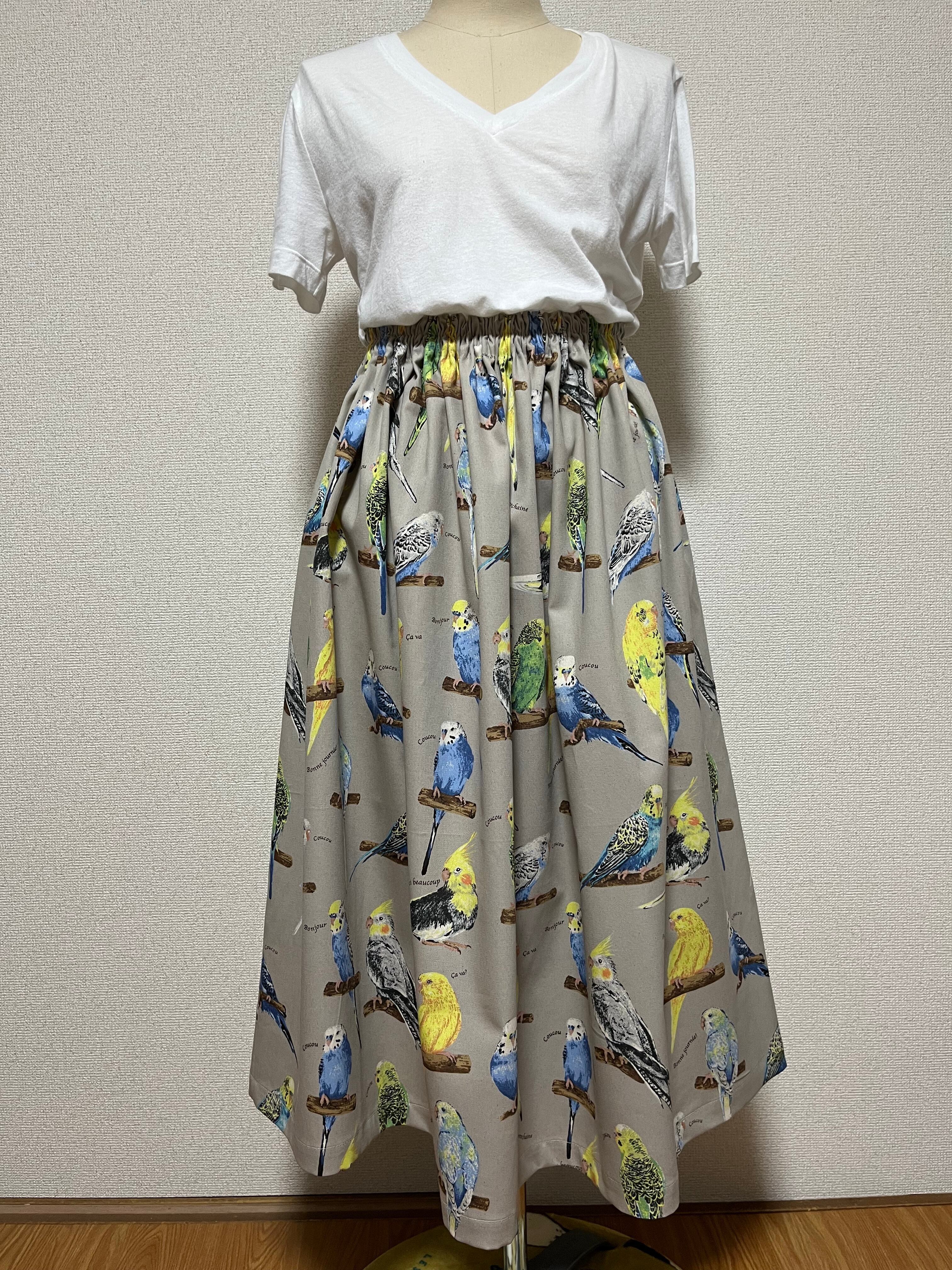 75cm丈 セキセイ、オカメインコ柄ギャザースカート