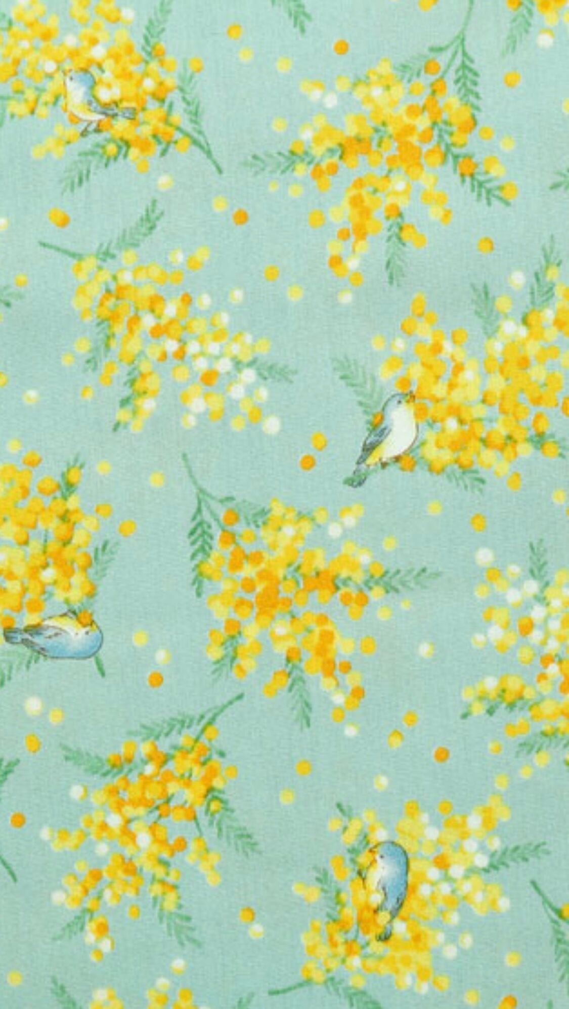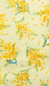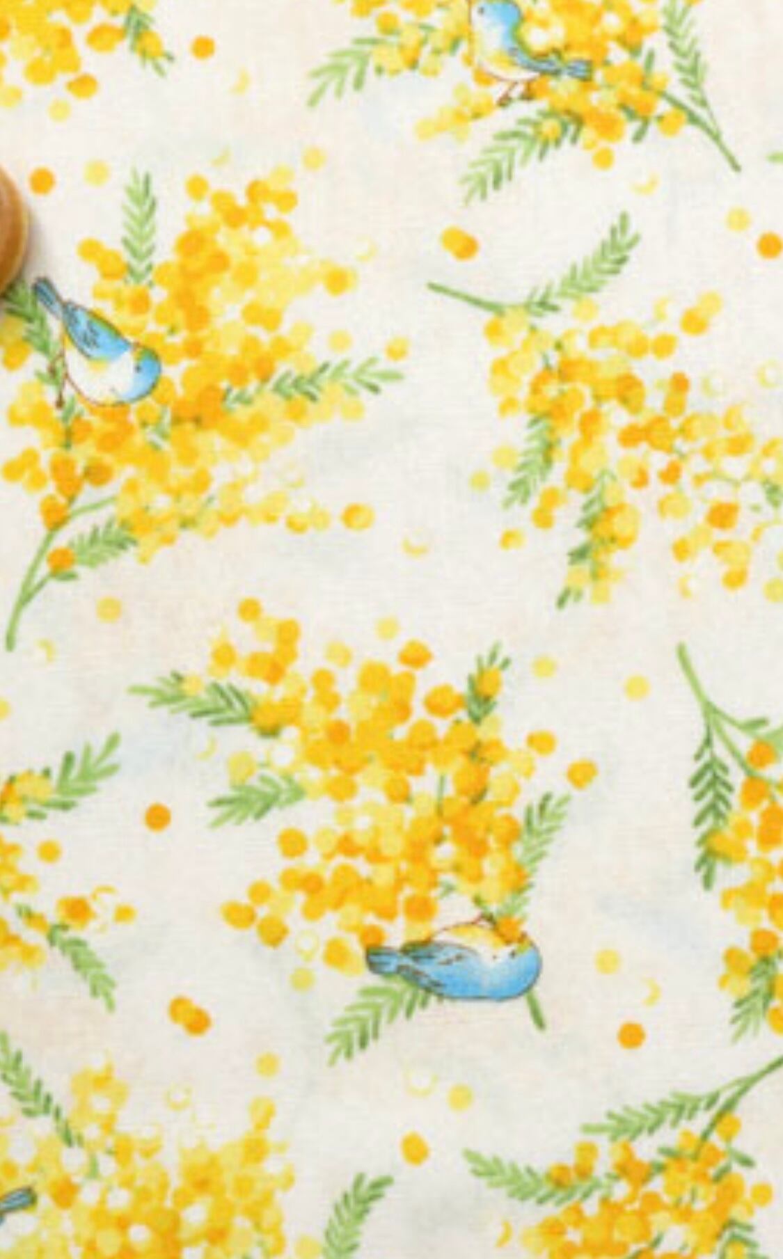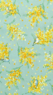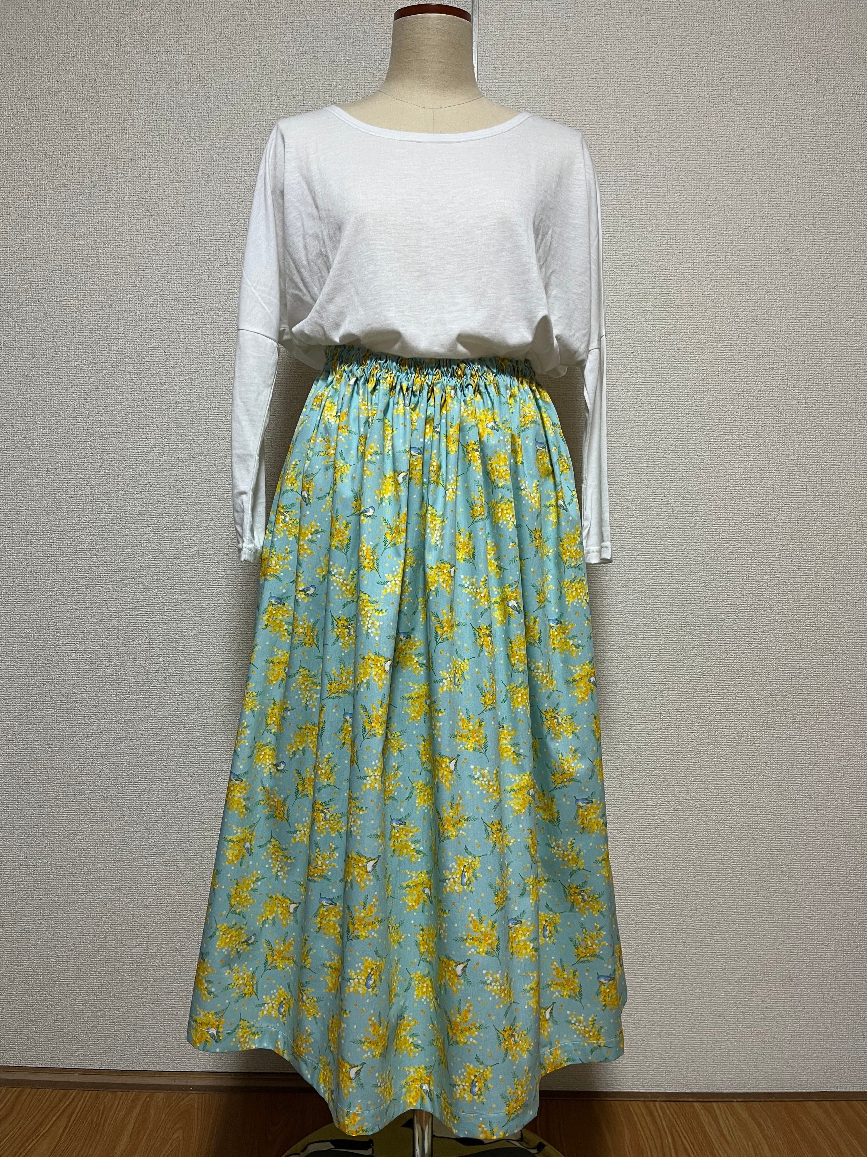 ミモザと青い鳥柄スカート
